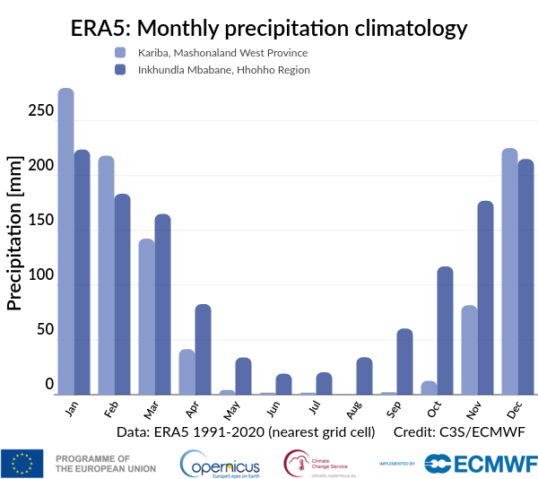 To illustrate, two locations in southern Africa with contrasting climates were selected (Fig. 3):
